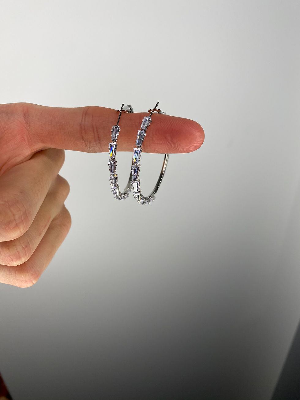 Silver Hoop Earrings with CZ and Quartz Crystals
